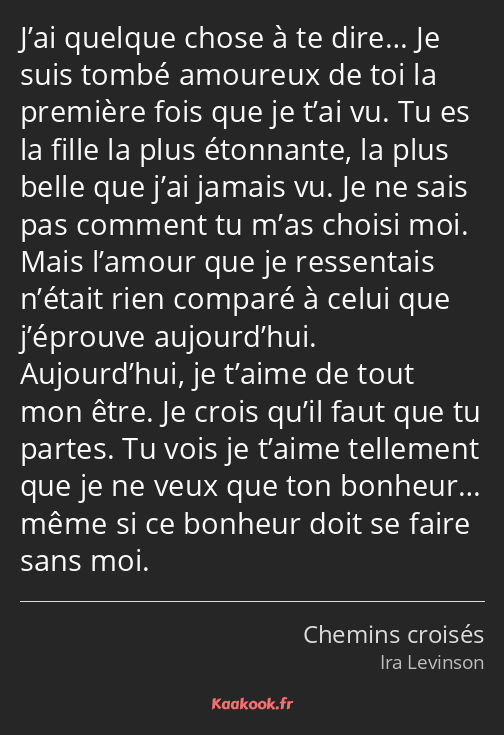 Je ne veux pas que nous partions chacun de notre côté, Chaton, parce que je suis amoureux de toi. Je t'aime.
