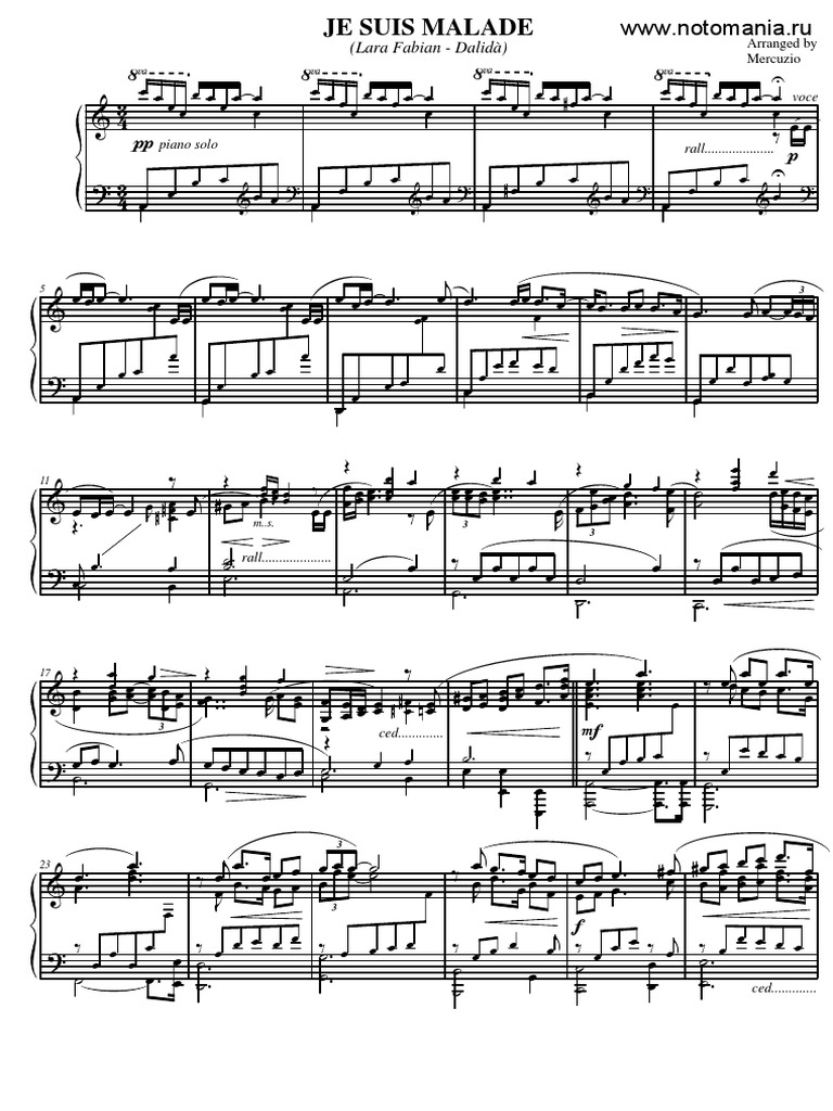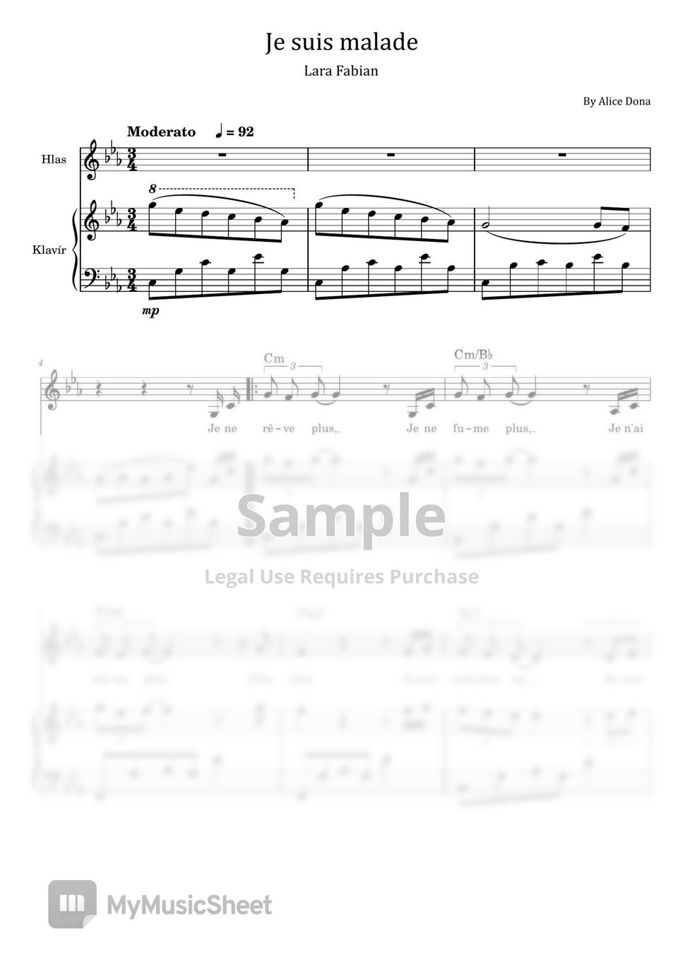 Lara Fabian - Je suis Malade sheet music for piano [PDF] | Piano.Solo | Piano sheet music, Sheet music, Free printable sheet music