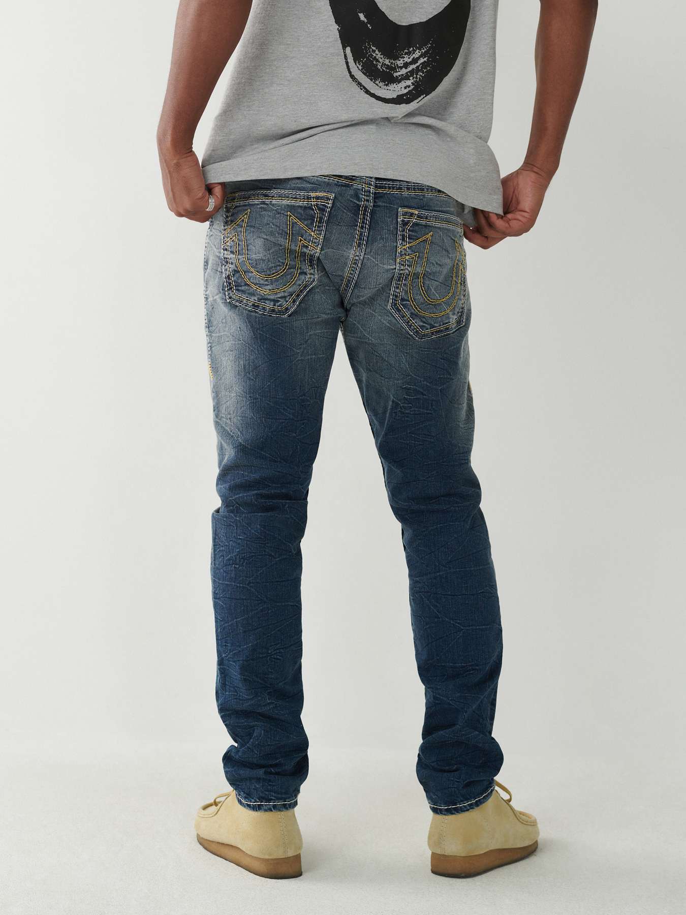 True Religion Men's Rocco Big T Skinny Fit Jean with Back Flap Pockets, Medium Beach Trail, 30W X 34L : Amazon.sg: Fashion