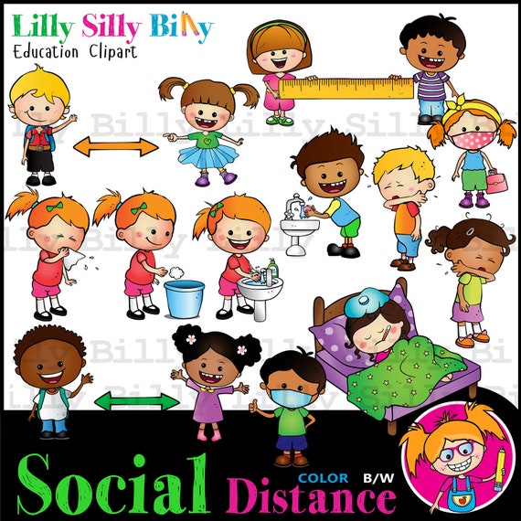 Clipart de distanciation sociale, lavage des mains, enfants mignons démontrant la distanciation sociale, pour un petit usage commercial, éducatif et personnel. - Etsy France