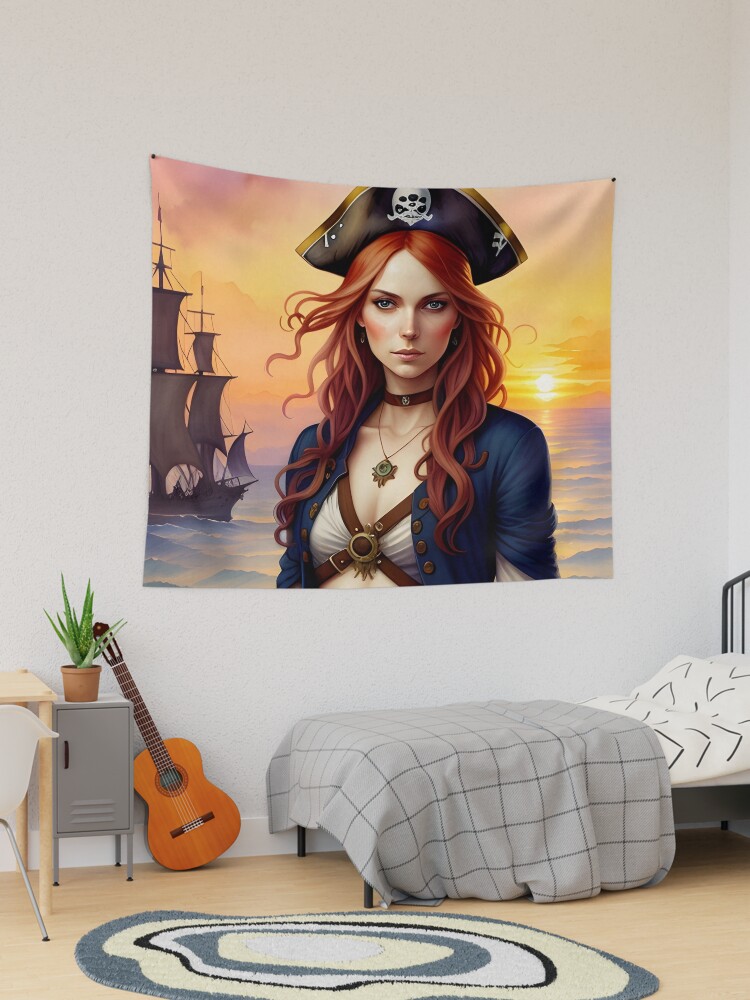 Tentures for Sale avec l'œuvre « Jeune fille pirate aux cheveux ...