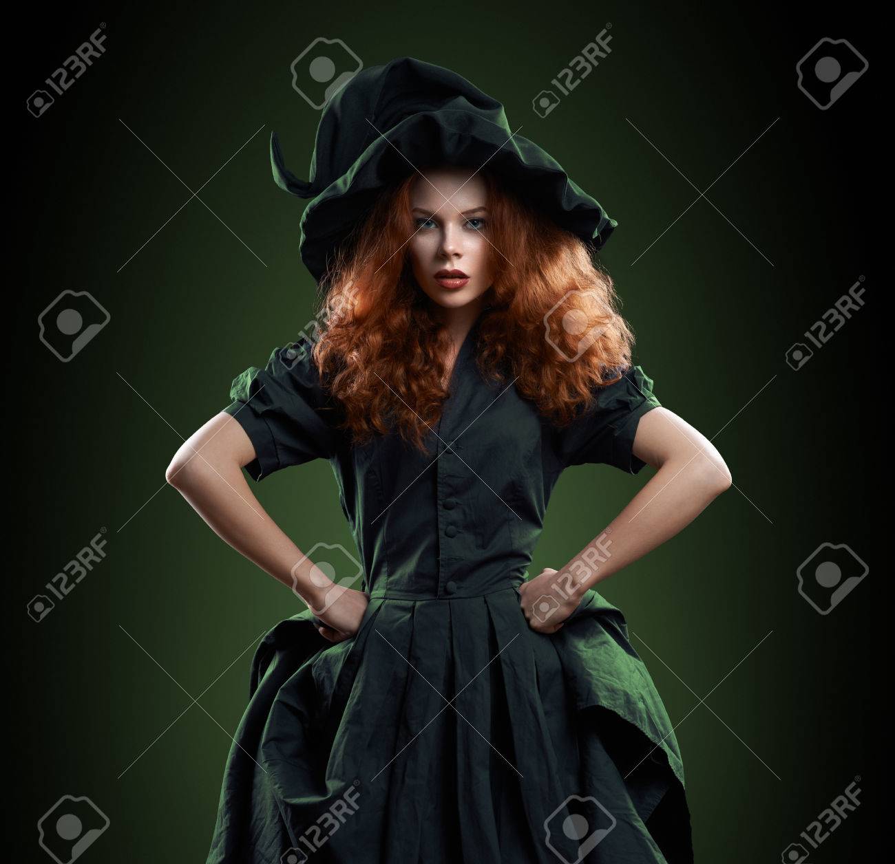 Belle Jeune Fille Aux Cheveux Rouges Dans Des Costumes De Sorcière ...