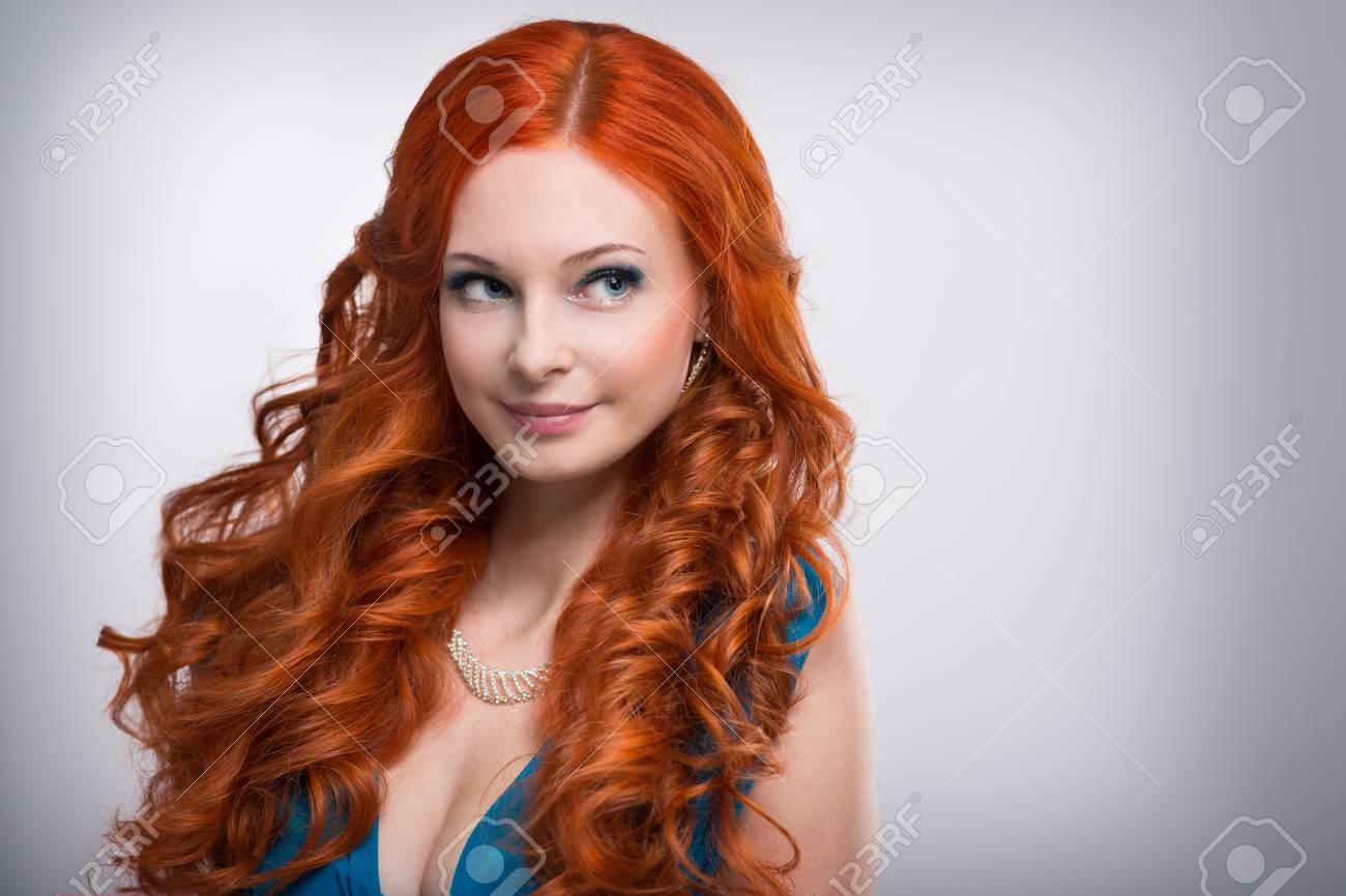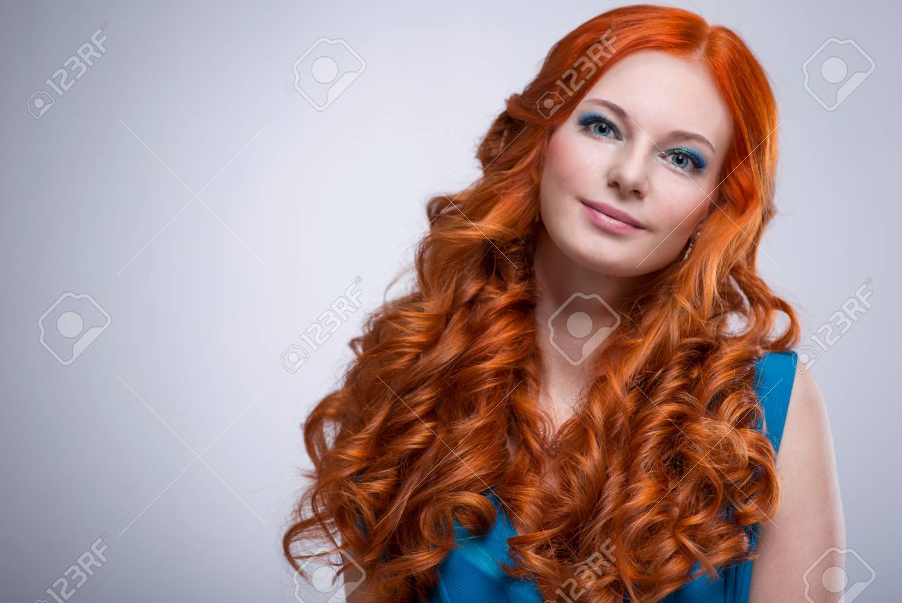 Portrait D'une Jeune Fille Aux Cheveux Rouges Ondulés Longs Et ...