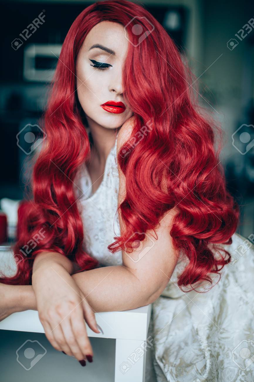 Fille Sexy De Beauté Avec Les Cheveux Rouges Image stock - Image ...