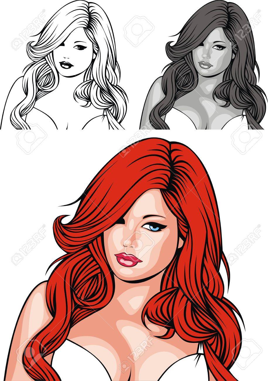 Portrait De Jeune Fille Aux Cheveux Rouges Vecteurs libres de ...
