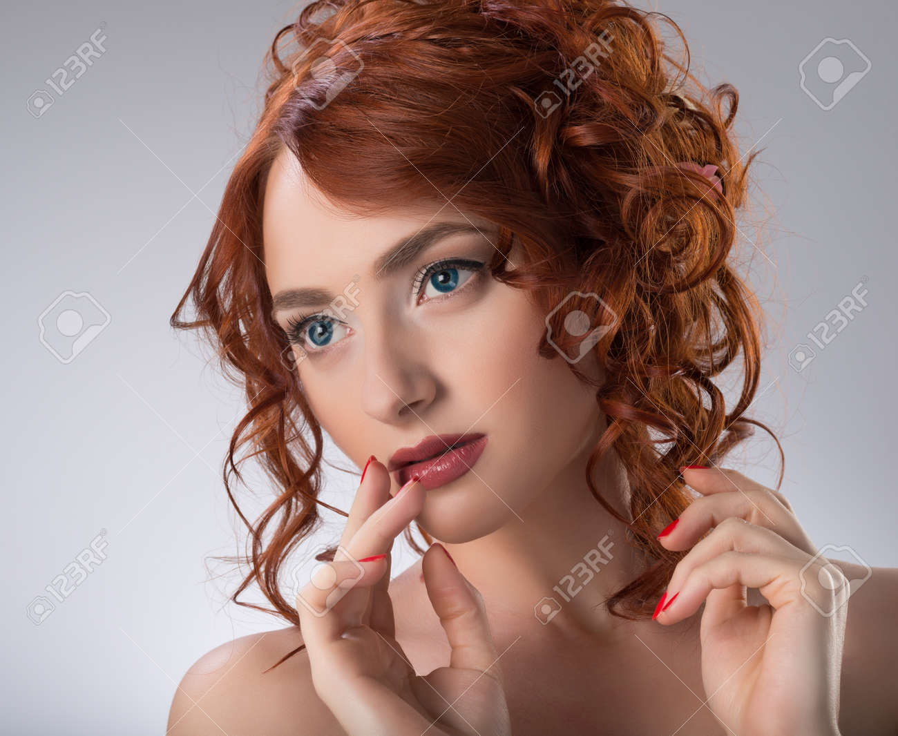Belle Jeune Femme Aux Cheveux Bouclés Rouges Portrait D'une Jeune ...