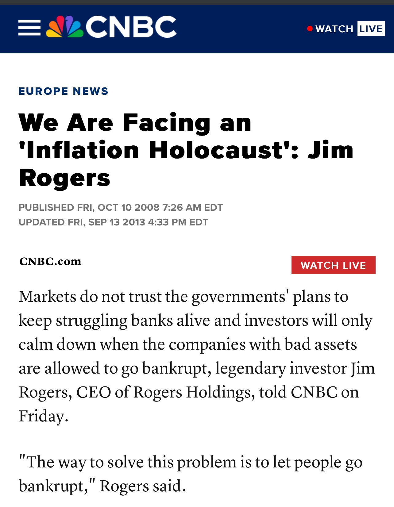 Shahin Ashkiani on X: "In 2008, the legendary investor Jim Rogers, affiliated with the Austrian School of Economics, predicted that the US was facing an 'inflation holocaust' Two years later, he won