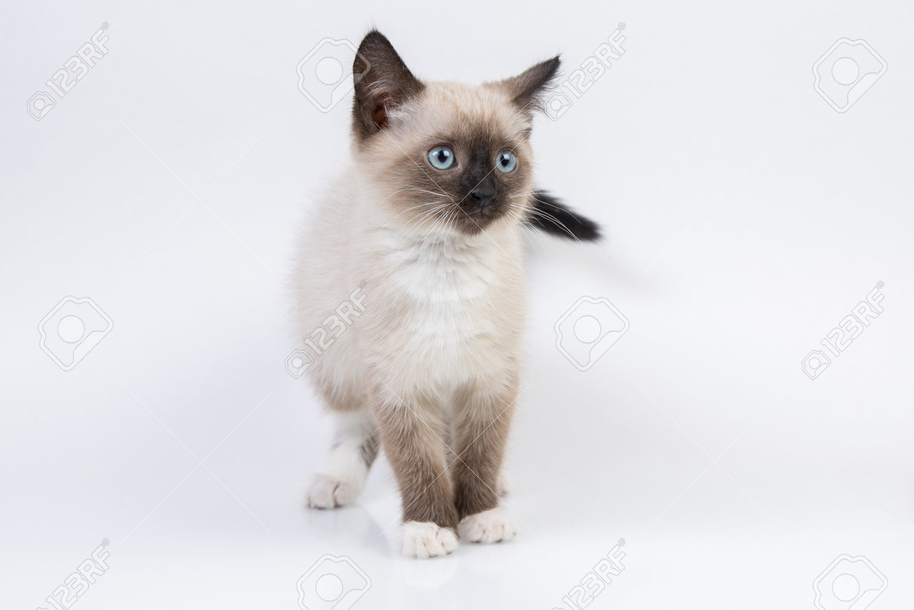 Jolie Race Blanche De Chat Siamois Assis À Côté Avec Impatience ...