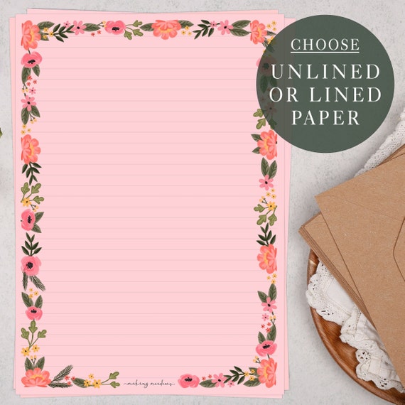 Feuilles de papier à lettres roses A4 Jolie bordure florale rose ...