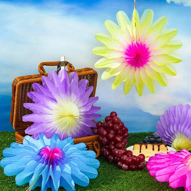 24 Pièces Printemps Été Décorations de Fleurs de Papier Suspendu ...