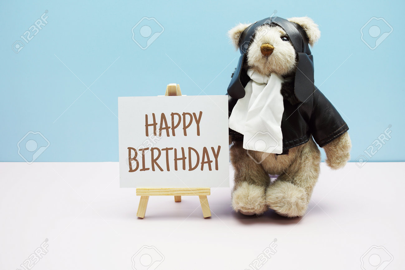 Message Texte De Joyeux Anniversaire Avec Un Joli Ours En Peluche Sur Fond Bleu Et Rose Banque D'Images et Photos Libres De Droits. Image 191897708