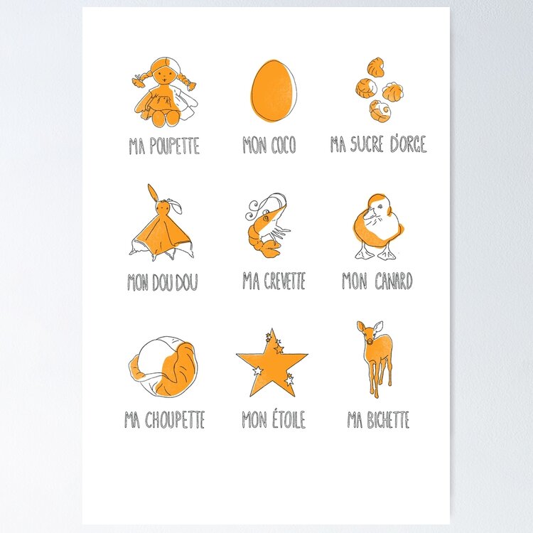 "'Les Petit Noms d'Amour' - French Pet Names (Feminine : Child)" Art Board Print for Sale by mirandaelder | Redbubble
