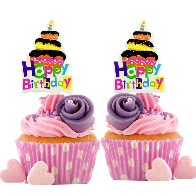 12 Pièces Toppers De Cupcake Joyeux Anniversaire, Décoration De ...