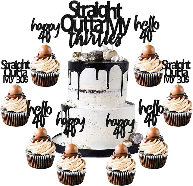 Kit de décoration de gâteau d'anniversaire Sursurprise-40th, noir ...