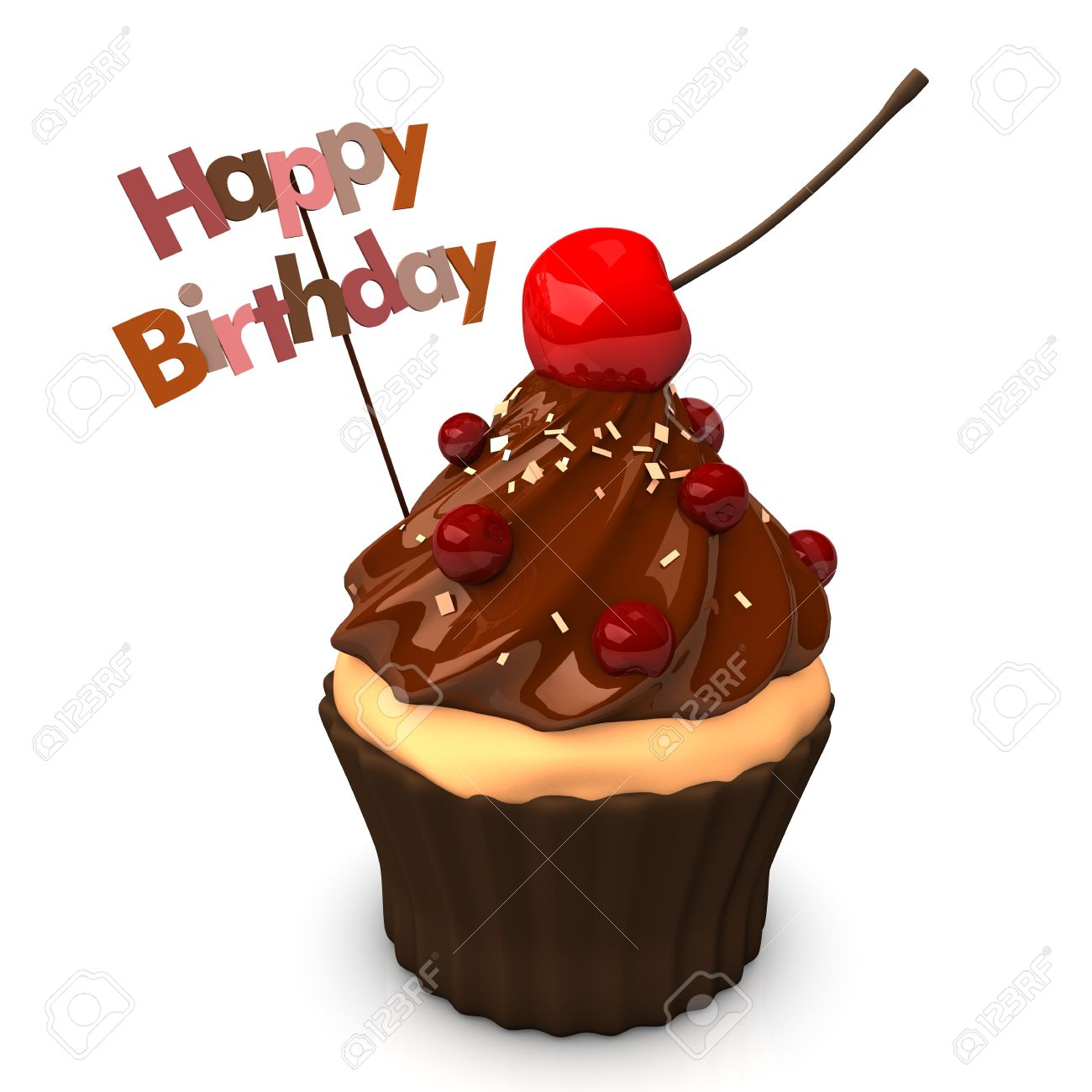Joyeux anniversaire cupcakes - illustration de muffins au chocolat ...