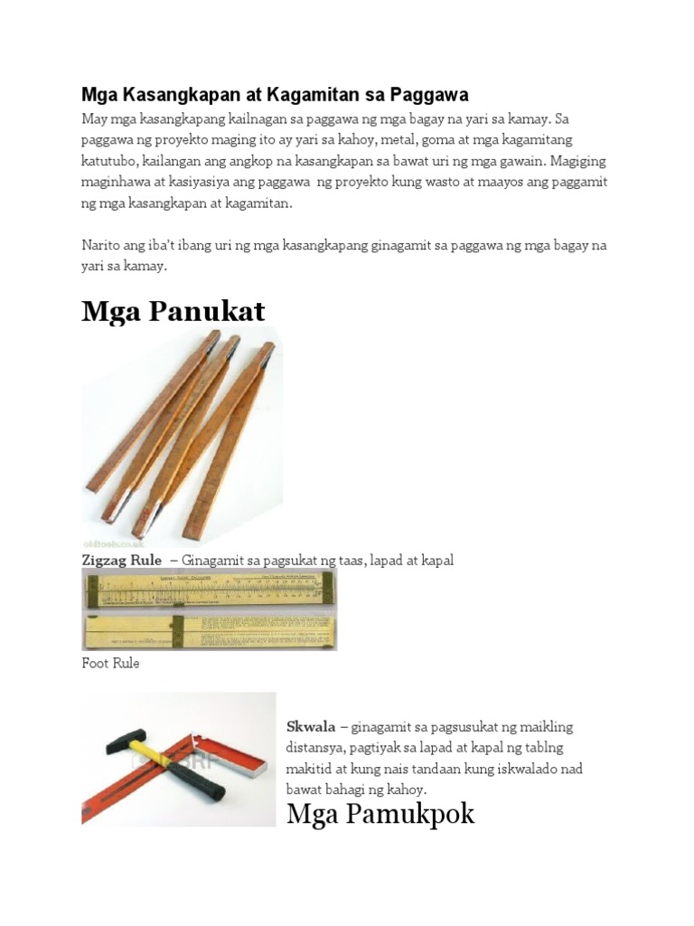 A. Panukat Mga Kasangkapan at Kagamitan sa Paggawa ...
