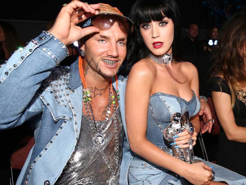 Katy Perry and Riff Raff in matching Versace Denim at VMAs | Video music awards, Celebrity style, Fashion