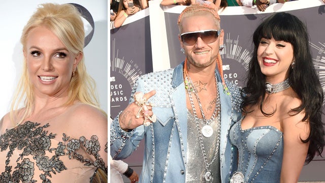 Katy Perry Pays Tribute to Britney Spears' Jean Dress at VMAs 2014 | 2014 MTV VMAs, Britney Spears, Katy Perry, Riff Raff | Just Jared: Celebrity Gossip and Breaking Entertainment News