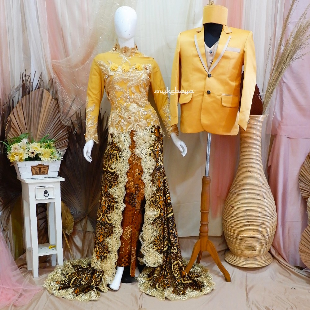 Jual SEPASANG KEBAYA PENGANTIN EKOR BATIK / KEBAYA EKOR BATIK MODERN / KEBAYA PERNIKAHAN MODERN | Shopee Indonesia