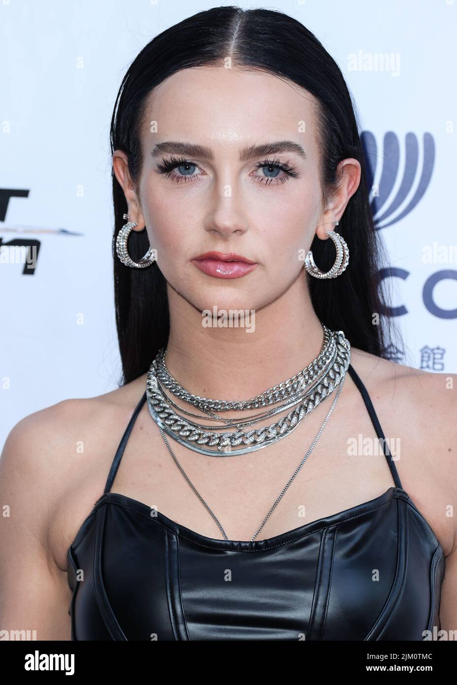 Los Angeles, États-Unis. 03rd août 2022. LITTLE TOKYO, LOS ANGELES, CALIFORNIE, États-Unis - AOÛT 03 : Samantha long arrive au « Bullet train » de la communauté de Los Angeles qui se