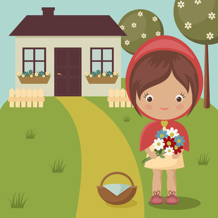 Le Petit Chaperon Rouge Près De La Maison De Grand-mère Avec Des Fleurs Et Le Panier Clip Art Libres De Droits, Svg, Vecteurs Et Illustration. Image 29672164