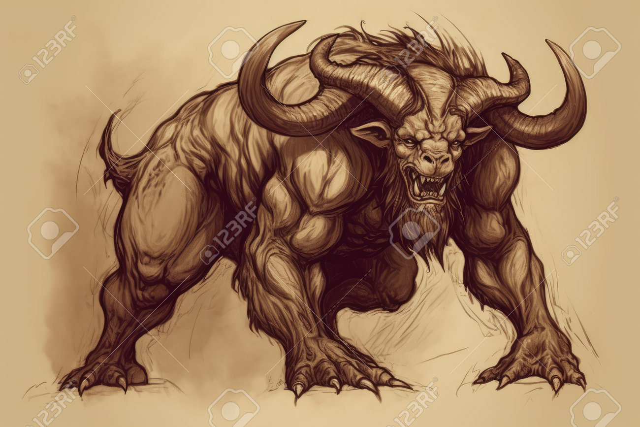 Monstre Minotaure. Art Grèce Labyrinthe. Générer De L'IA Banque D ...