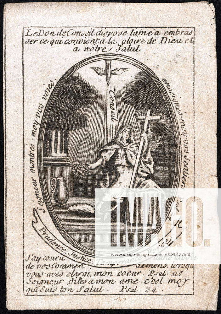 Les quatre dons : Conseil, Intelligence, Sagesse et Esprit Saint Image pieuse. 20e siècle Collection privée