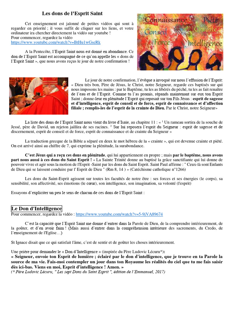 PENTECÔTE : Que sont les dons de l'Esprit-Saint ? 1/2 - Fédération des Associations Familiales Catholiques du Val de Marne (et du 93)