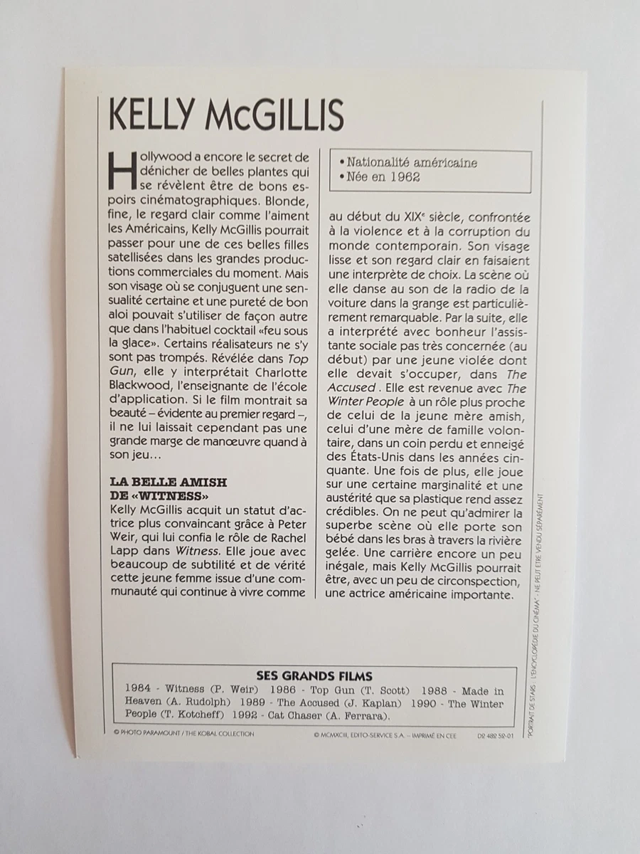 KELLY MCGILLIS - CARTE FICHE CINEMA PORTRAIT DE STAR | eBay