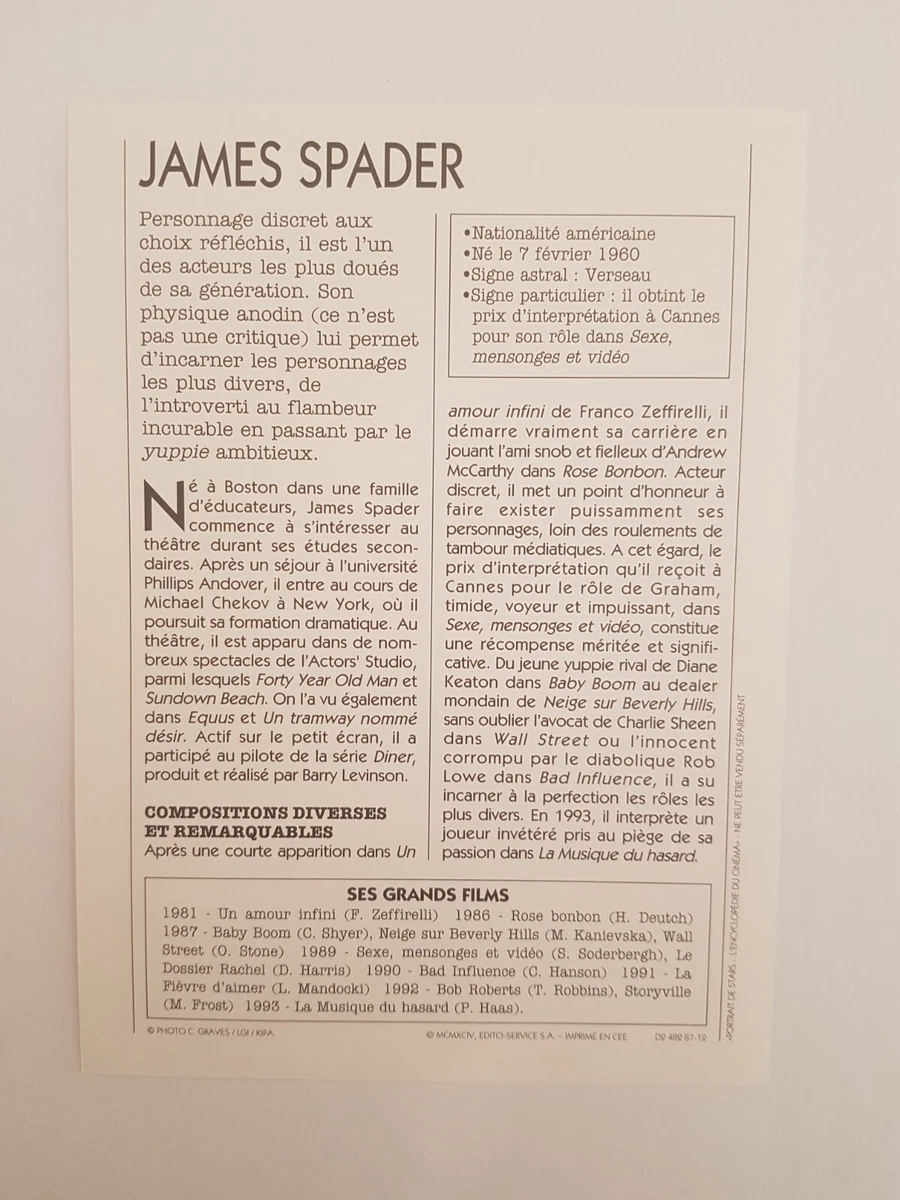 JAMES SPADER - CARTE FICHE CINEMA PORTRAIT DE STAR | eBay