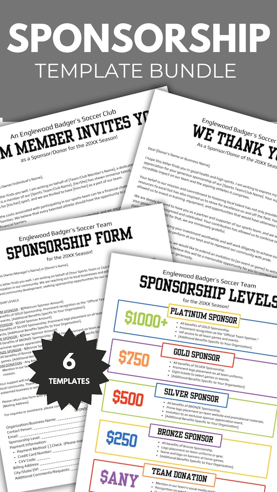 Lettre de parrainage Flyer de don Parrain Lettre de remerciement Modèle de parrainage sportif Formulaire de niveau de parrainage Lettre de demande de don de club - Etsy France