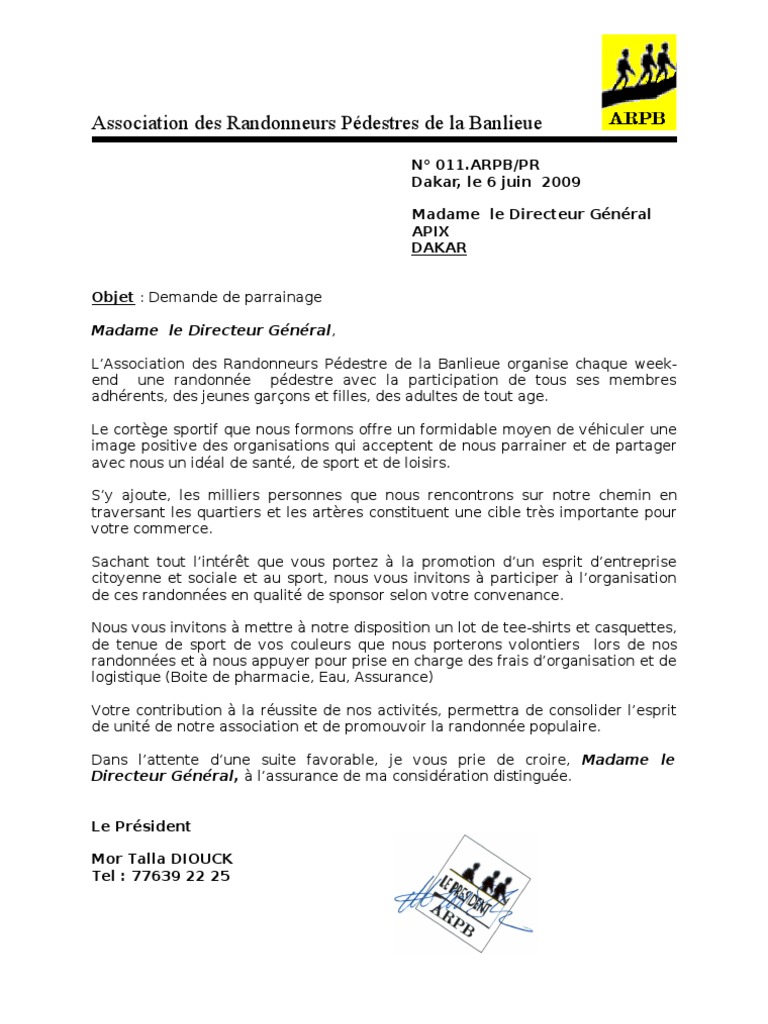 Lettre Demande de Parrainage APIX SA | PDF | Randonnée