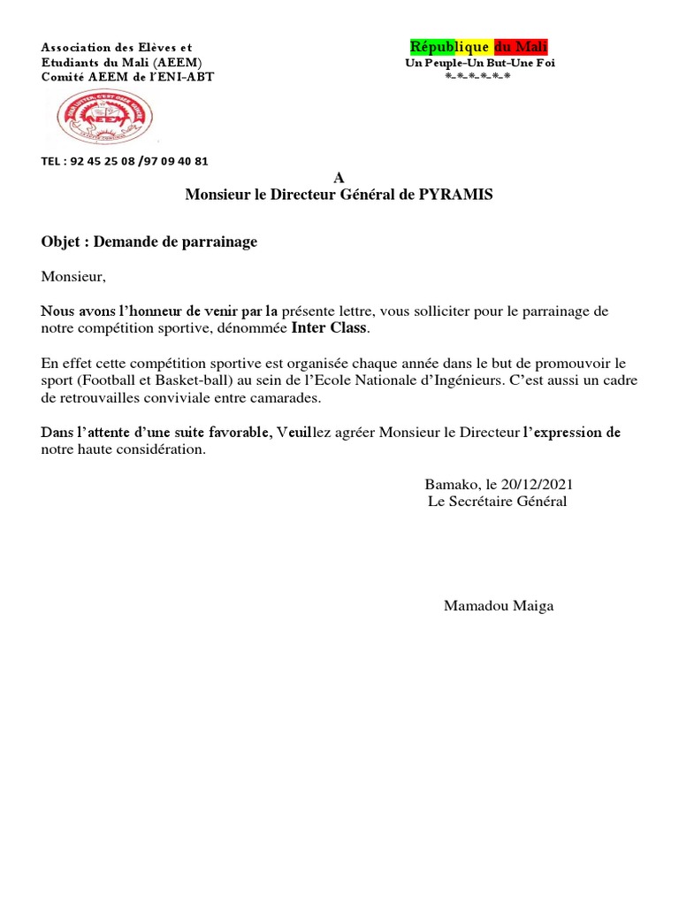 Lettre de demande de sponsoring sportif individuel | Lettre a, Lettre de parrainage, Exemple de lettre