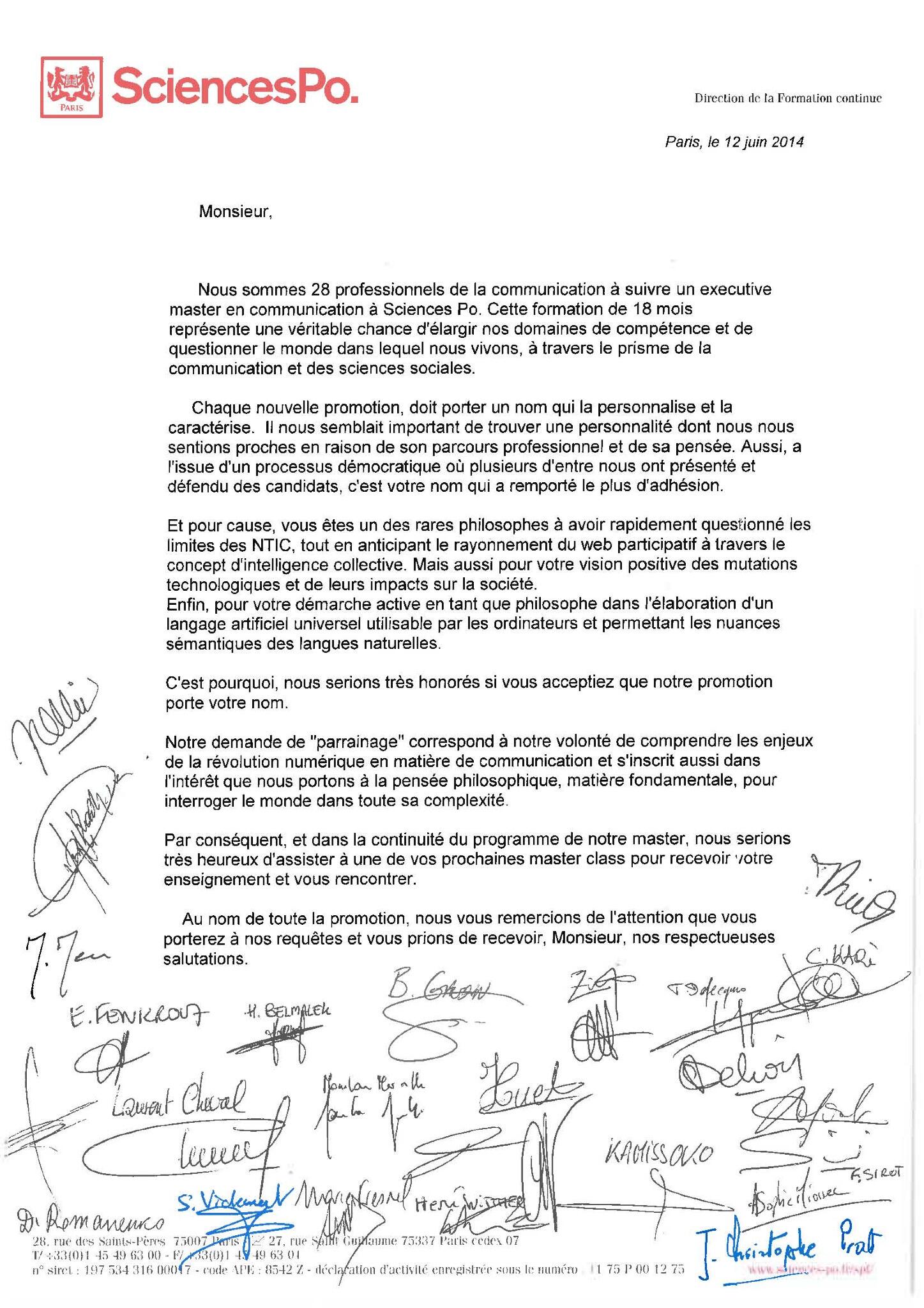 Pierre Levy 🌻💔 on X: "La belle lettre de demande de parrainage que les étudiant(e)s du Master en Com. de Sciences-Po m'ont envoyé. Accepté! http://t.co/CK777wlkfG" / X