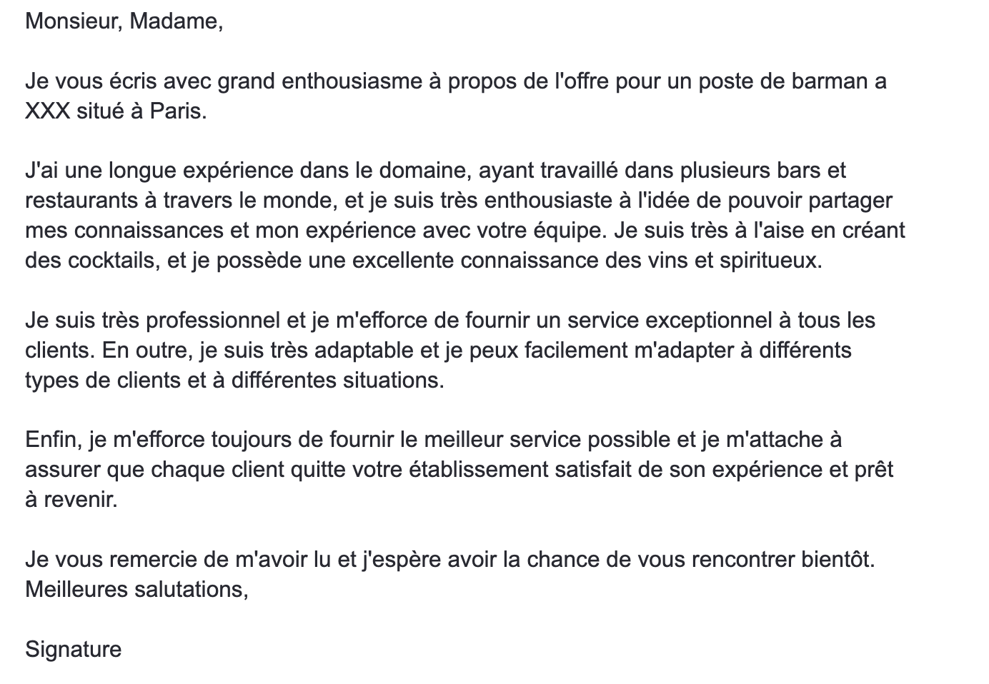 Lettre de motivation de serveuse/serveur | OnlineCV