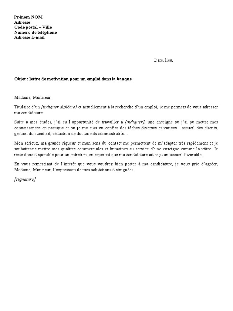 Lettre Motivation Emploi Banque | PDF