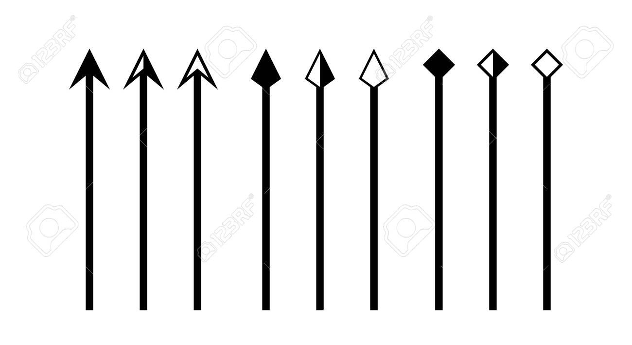 Ensemble De Lignes Verticales De Flèche Isolé Sur Blanc, Les Lignes Et Les Flèches Indiquent La Dimension Du Dessin, Pointe De Flèche Noire Sur Une Ligne Verticale, Ligne De Flèche Pour L'échelle