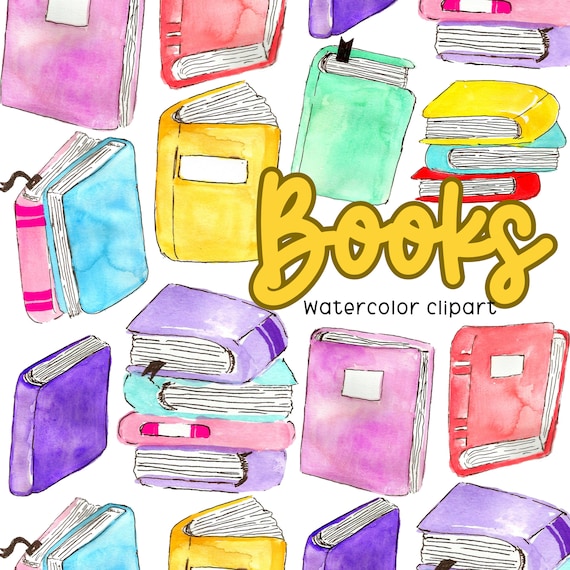 Clipart de livres à l'aquarelle, livres empilés, graphiques de bibliothèque au format png. Retour à l'utilisation commerciale du téléchargement numérique du livre scolaire - Etsy France