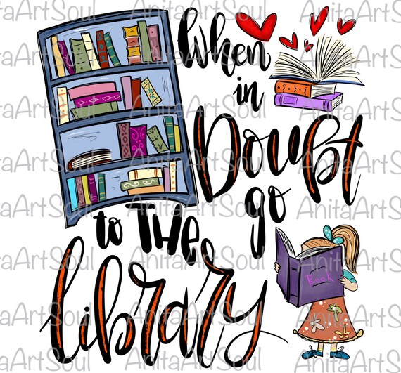 Bibliothécaire Sublimation PNG Design, bibliothèque scolaire, En cas de doute, allez à la bibliothèque, Dessiné à la main Digital Download Clip Art, livres - Etsy France