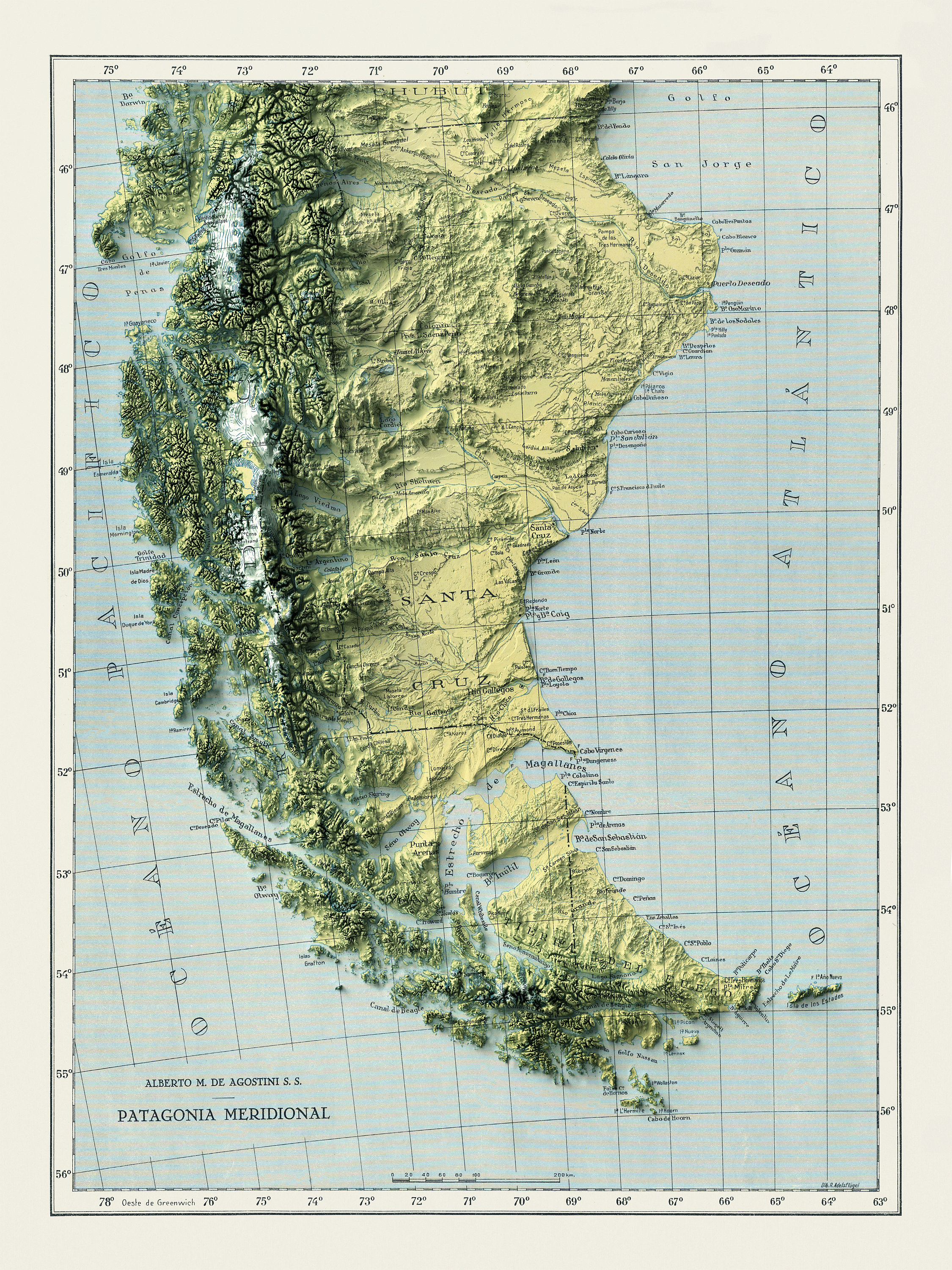 Carte de la Patagonie, carte en Relief ombragé de la Patagonie, Art mural de la Patagonie, carte Topo de la Patagonie, impression de l'Argentine, impression du Chili, décoration murale des Andes -