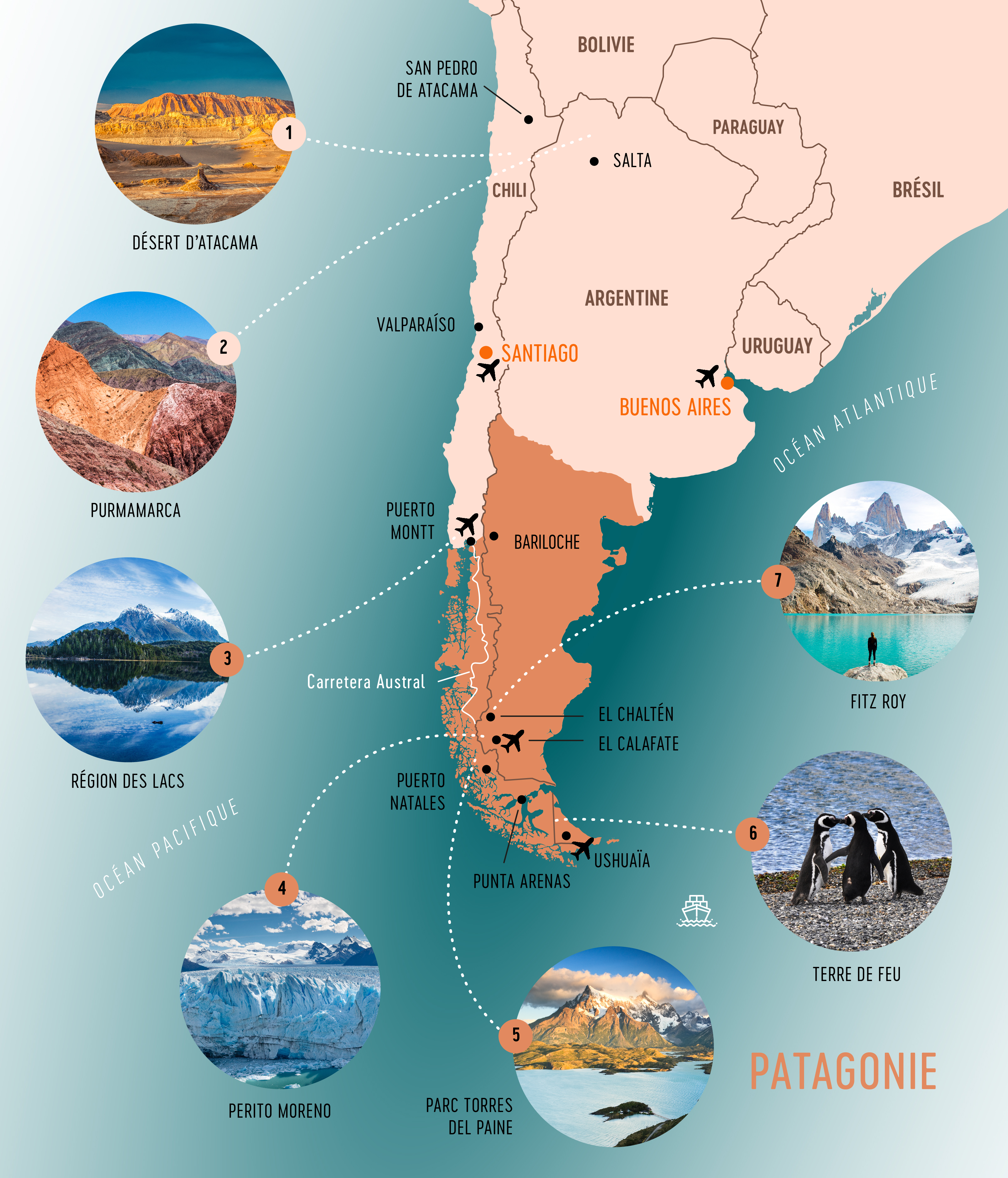 Carte itinéraire Patagonie Argentine Chili | Voyage amerique du sud, Chili patagonie, Patagonie