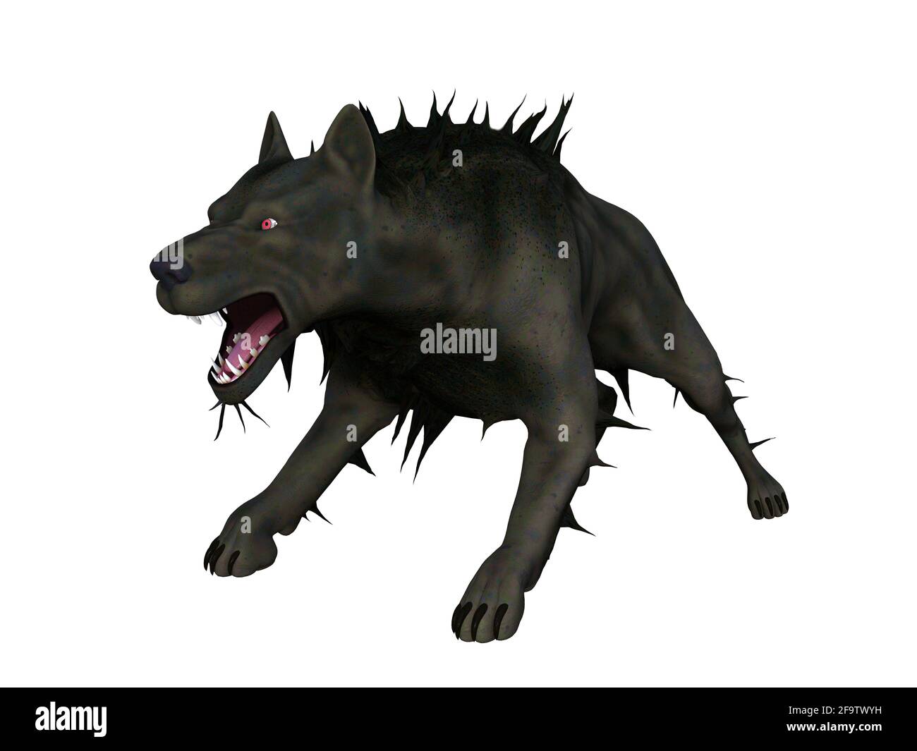 Le Loup Géant Fenrir Dépassant Des Montagnes, Le Feu émane ...