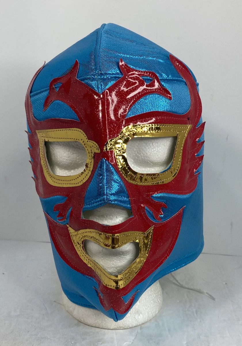 Mexican Wrestling El Luchador Mask Blue Red Gold Lucha Libre Unused Excel. Cond.