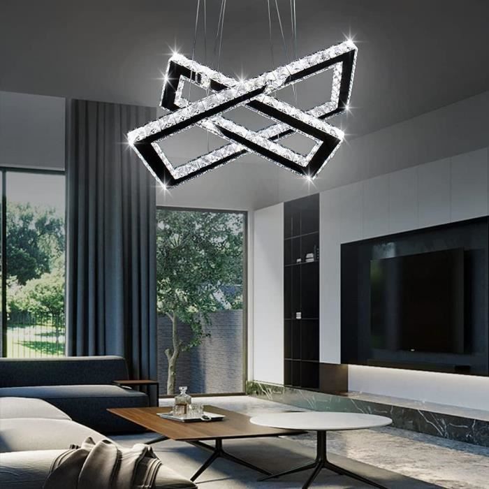 Lustre Moderne Lustre En Cristal Rectangulaire À 2 Anneaux Lustre Salle À Manger Cristal Plafonnier Diy Forme Réglable Led Su[J3141] - Cdiscount Maison