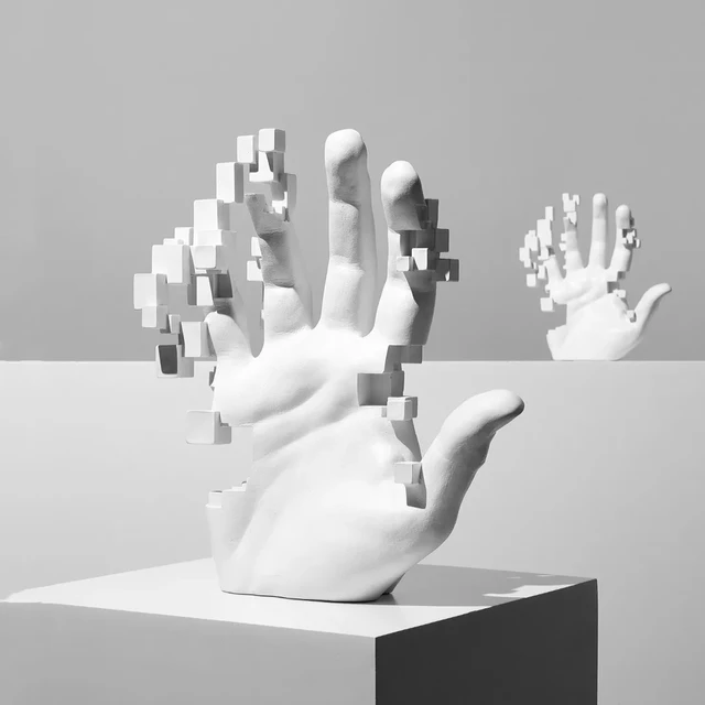 Statue d'art de paume de main en mosaïque, décor moderne, Sculpture de main en résine, artisanat abstrait, figurine d'art de paume de main