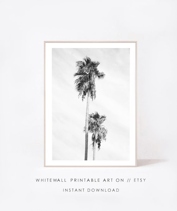 Photo noir blanc, feuilles de palmier, impression tropicale ...