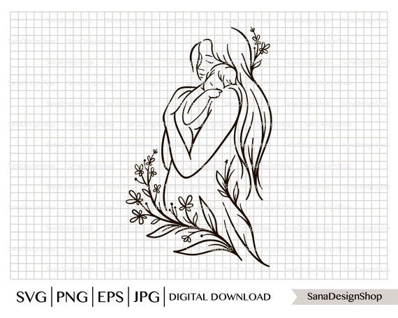 Maman et bébé svg, svg floral maman, dessin au trait mère et bébé, maman et moi svg, dessin au trait féminin, svg fête des mères, svg vie de maman - Etsy France