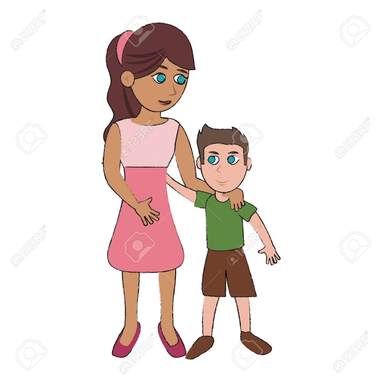 Maman Et Fils Dessin Animé Icône Vector Illustration Graphisme Clip Art Libres De Droits, Svg, Vecteurs Et Illustration. Image 91384356