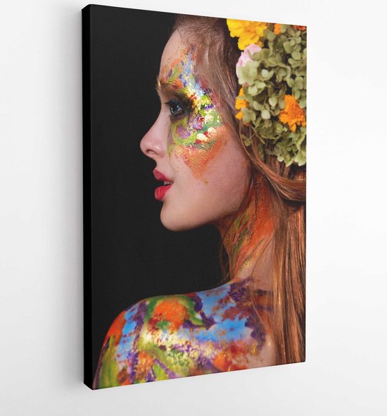Fille Avec Des Fleurs Sur Le Visage Et Le Maquillage Coloré Photo stock - Image du attrayant, fille: 123247634