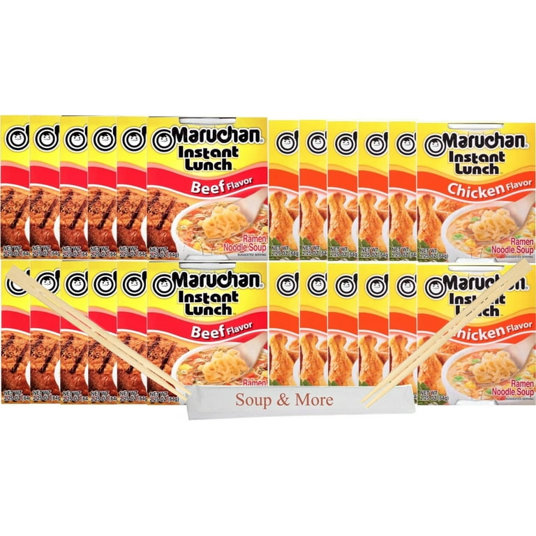 Maruchan Ramen Cup Noodles Instant 24 Count - 12 Beef cups & 12 Chicken cups Lunch / Dinner Variety, 2 Flavors